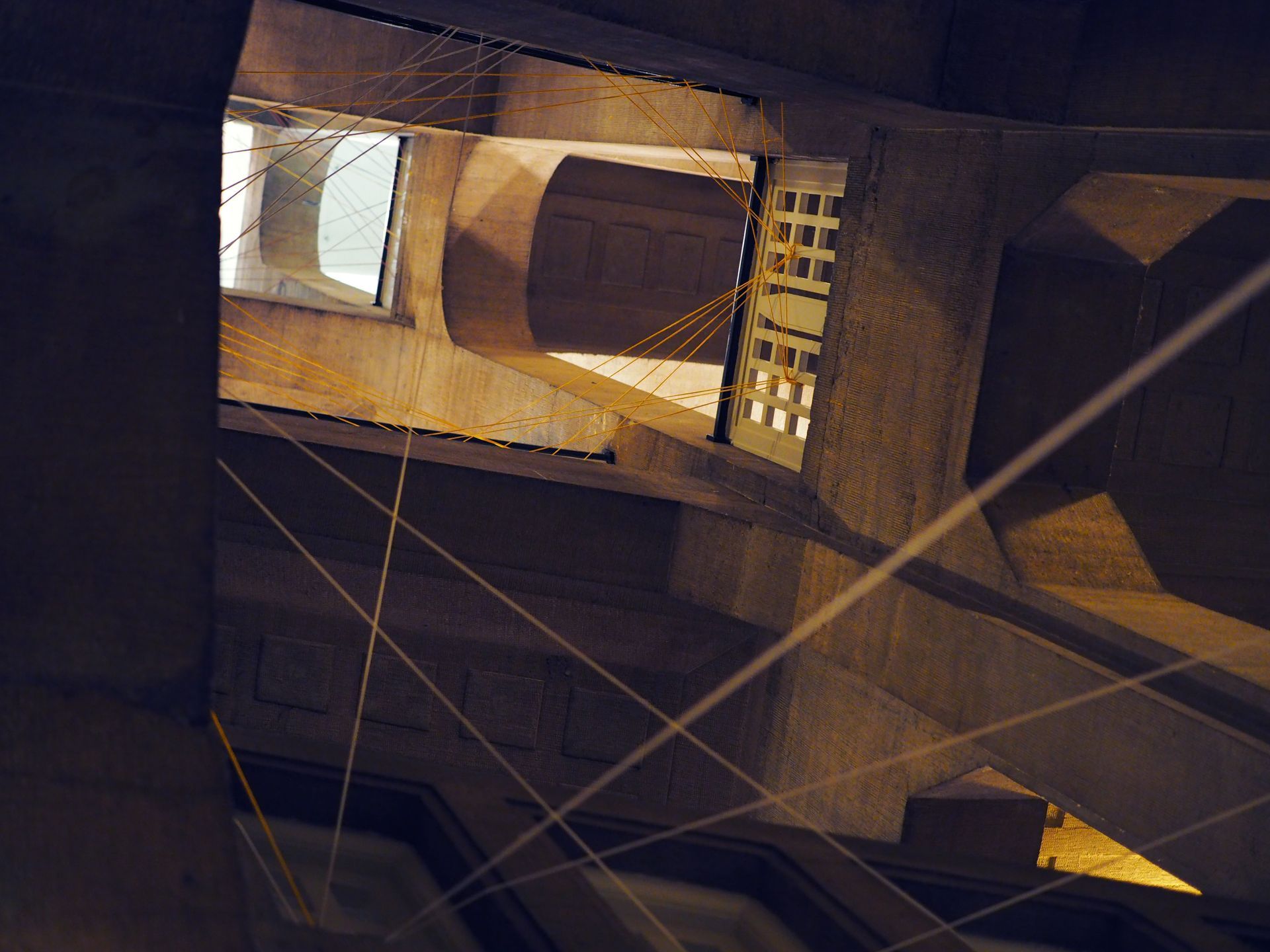 Durch Treppensteigen konnte man sich verschiedene Perspektiven auf das Werk erarbeiten, das beim Hinabsteigen ein immer dichter werdendes Netz abbildete.